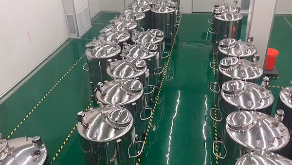 暫存室裡的每一桶精華液原料 進充填室之前的模樣