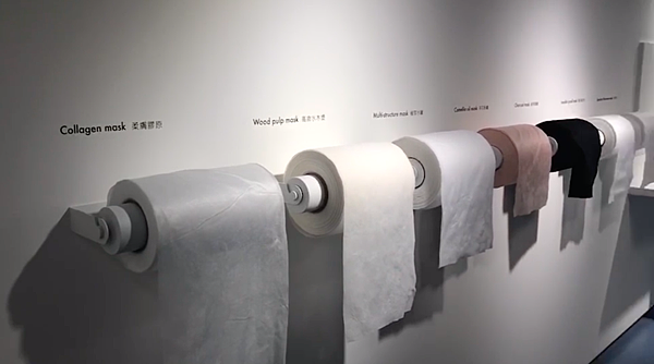 現場也看了好多膜布 (柔膚膠原 高含水木漿 極聚水纖 茶花粉纖) (太多了)